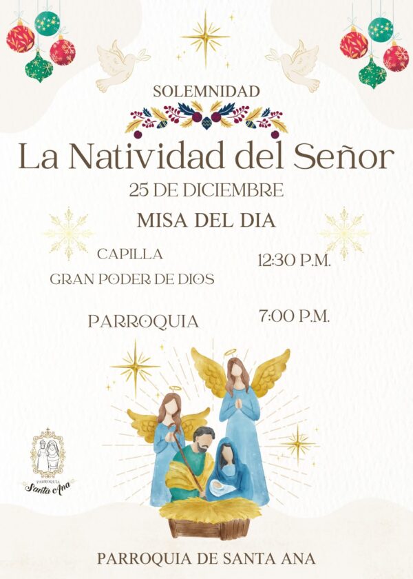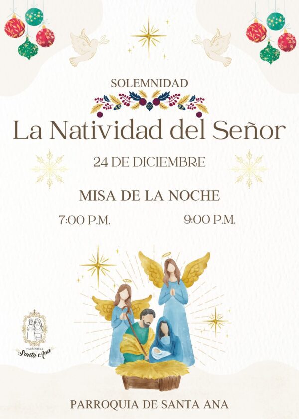 La comunidad de Santa Ana ha organizado sus servicios dividiendo la solemnidad en la “Misa de la Noche” y la “Misa del Día”. El domingo 24, esa parroquia contará con dos horarios nocturnos: 7:00 y 9:00 p.m.