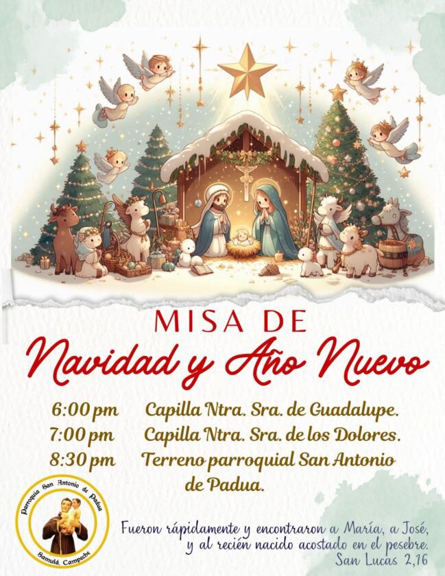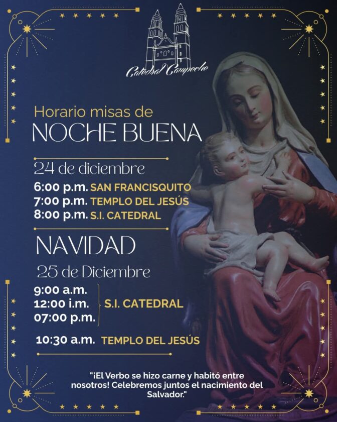 HORARIOS DE MISAS POR NOCHEBUENA Y NAVIDAD EN CAMPECHE