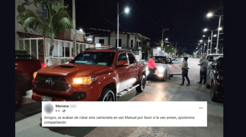Ciudad del Carmen.- En otro hecho delictivo que contradice la narrativa del Gobierno de Layda Sansores, secundada por la jefa policiaca Marcela Muñoz, de que Campeche es un Estado seguro, ahora en Ciudad del Carmen fue reportado el robo de una camioneta.