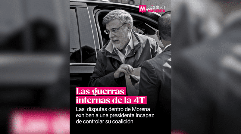 Código Magenta señala que el vacío de poder que ha dejado el expresidente Andrés Manuel López Obrador y la falta de acciones disciplinarias contundentes de Claudia Sheinbaum han derivado en una andanada de fracturas internas en la 4T: Julio Scherer Ibarra contra Jesús Ramírez Cuevas, Marx Arriaga contra Mario Delgado, Layda Sansores contra Ricardo Monreal.