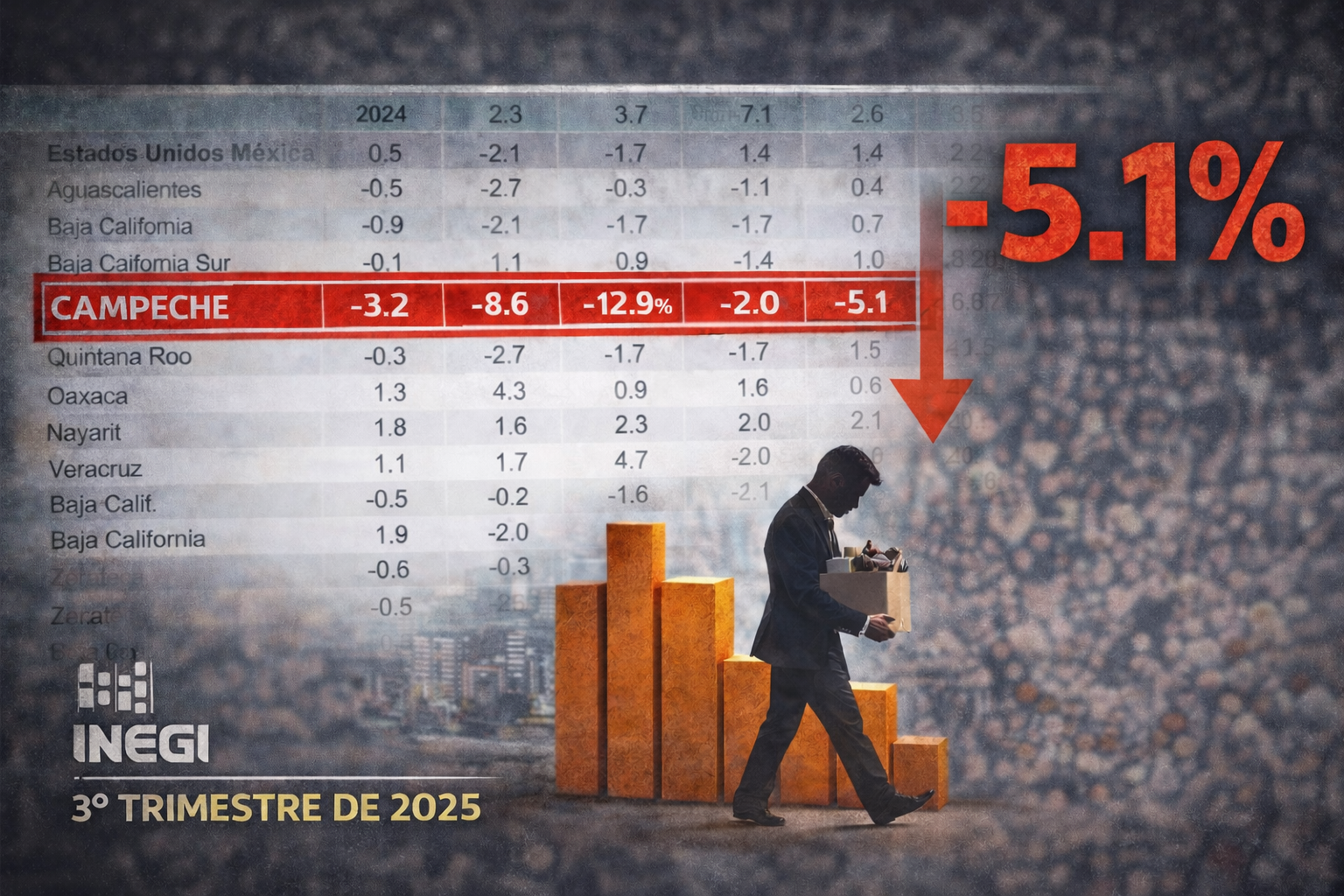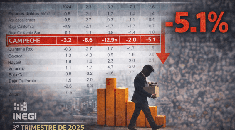 Durante 2024 y 2025, Campeche ha registrado cifras negativas en la generación de empleos remunerados, de acuerdo con las Mediciones Trimestrales de los Puestos de Trabajo y sus Remuneraciones por Entidad Federativa del Instituto Nacional de Estadística y Geografía (INEGI), dadas a conocer el 4 de marzo de 2026. Los datos muestran que la entidad ha mantenido una tendencia de pérdida de puestos laborales durante ambos años.