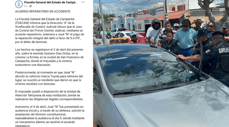 Campeche.- A través de un mecanismo alterno, el conductor que atropelló con su automóvil a un conductor del sistema Ko’ox en la avenida Gustavo Díaz Ordaz, logró un acuerdo reparatorio por el delito de l£sion£s, dio a conocer la Fiscalía General del Estado de Campeche (FGECAM).