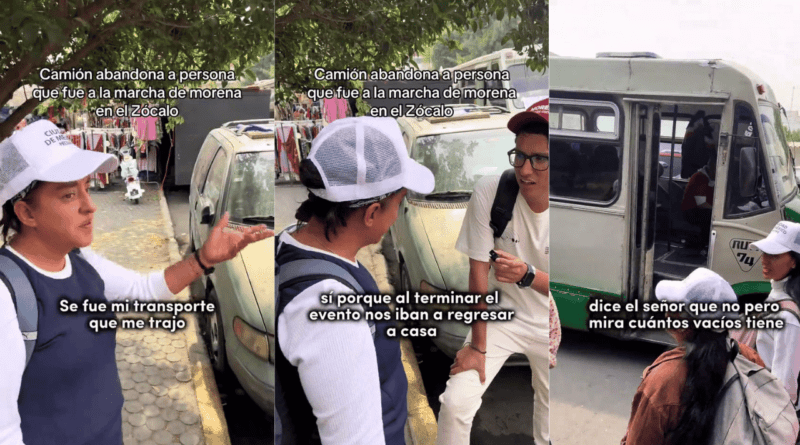 “Se fue el transporte que me trajo, porque al terminar el evento nos iban a regresar a casa”, reveló resignada una mujer identificada como Leticia, de La Territorial, de Guelatao Zaragoza, de la Ciudad de México, al término del mitin en el Zócalo que encabezó la presidenta Claudia Sheinbaum y organizó junto con Morena, de acuerdo con un video que el creador de contenido Greco Monroy subió a sus redes sociales.
