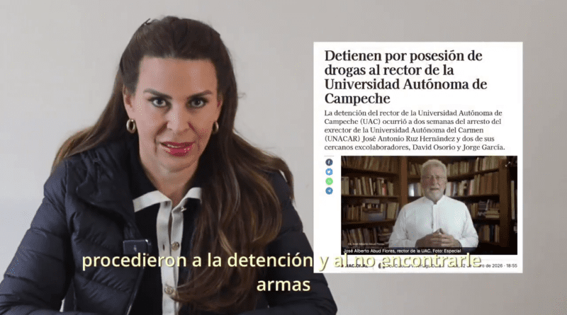 Mencionó la detención del exrector de la Universidad Autónoma de Campeche, José Alberto Abud Flores, a quien —dijo— se le fabricaron cargos para separarlo del puesto e impedir su reelección, lo que derivó en el nombramiento de una rectoría afín al gobierno estatal.