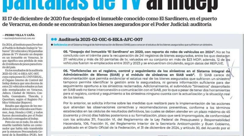 De acuerdo con el trabajo de investigación realizado por un reportero de El Universal, al Instituto para Devolver al Pueblo lo Robado (Idep) le robaron, pues “desaparecieron” 211 vehículos y 50 pantallas, con valor superior a los 23 millones de pesos, por el despojo en diciembre de 2020 del predio El Sardinero.