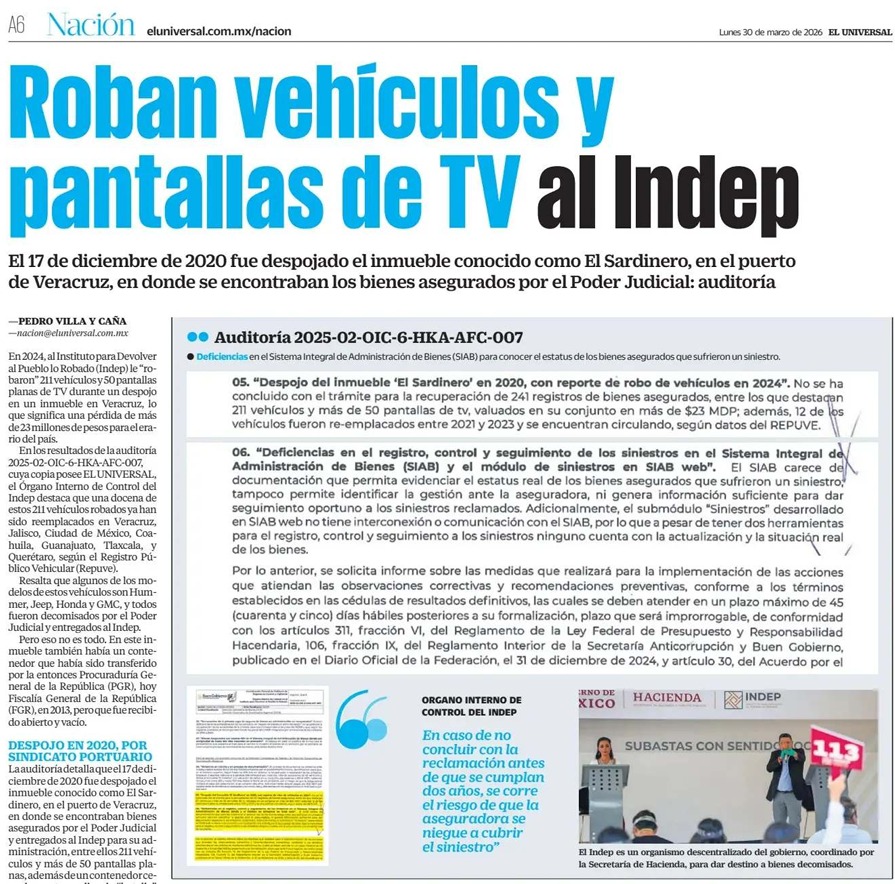 De acuerdo con el trabajo de investigación realizado por un reportero de El Universal, al Instituto para Devolver al Pueblo lo Robado (Idep) le robaron, pues “desaparecieron” 211 vehículos y 50 pantallas, con valor superior a los 23 millones de pesos, por el despojo en diciembre de 2020 del predio El Sardinero.