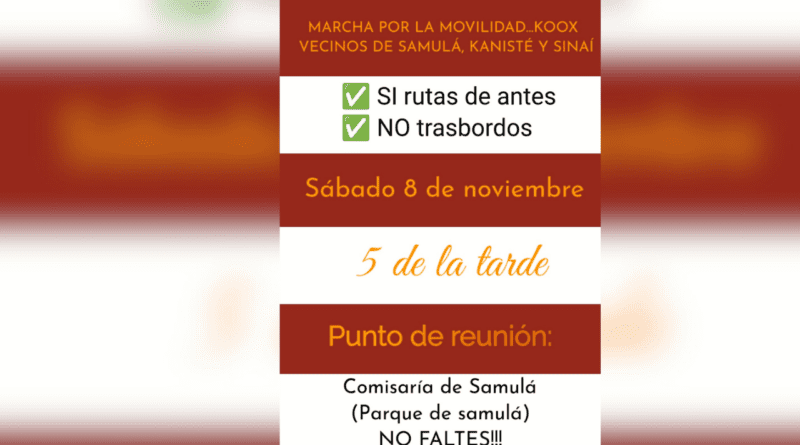 MARCHARÁN MAÑANA SÁBADO EN SAMULÁ CONTRA TRANSBORDOS Y PARA EXIGIR RUTAS ORIGINALES AL KO’OX