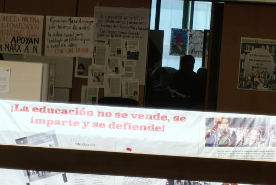 A pesar de la destitución formal, Arriaga continuó con sus actividades, y desde el viernes pasado se han colocado pancartas en apoyo a su trabajo al frente de la Dirección de Materiales Educativos.
