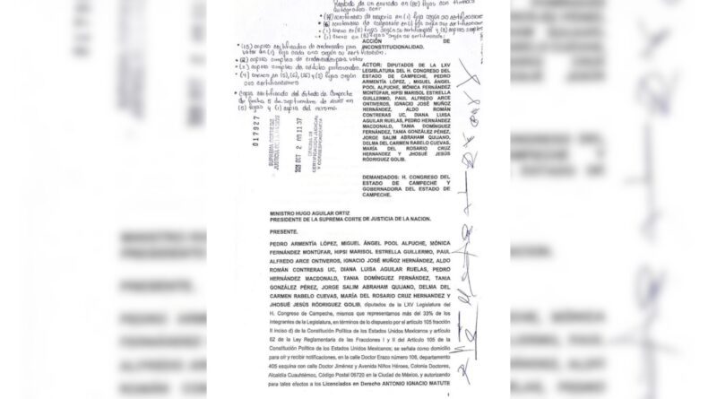 MC, PRI Y PAN BUSCAN QUE SCJN ANULE LA “LEY ALITO” DE LAYDA POR PONER EN RIESGO PROPIEDADES Y DERECHOS DE LOS CAMPECHANOS