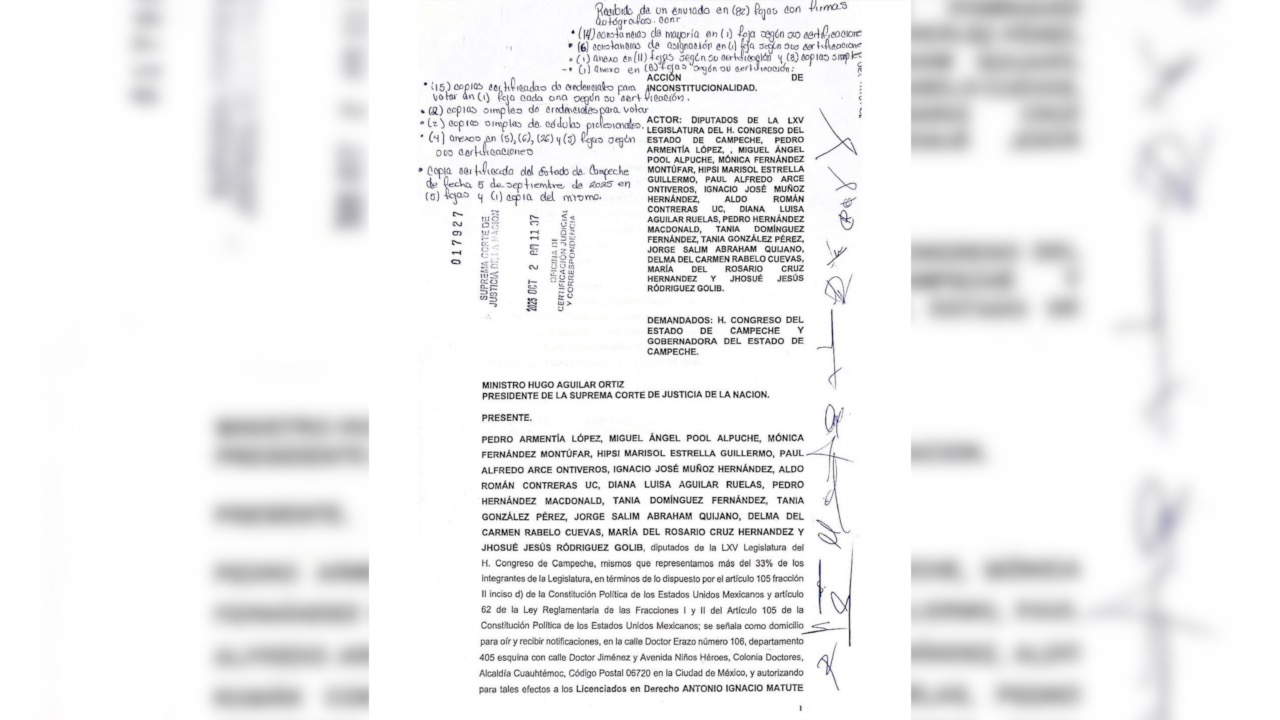 Diputados de Movimiento Ciudadano, PRI y PAN presentaron este jueves 2 de octubre una “Acción de Inconstitucionalidad” contra la nueva Ley de Expropiación de Campeche, conocida como “Ley Alito” o “Ley Chavista de Layda Sansores”. Buscan que la Suprema Corte de Justicia de la Nación la declare inválida porque consideran que deja desprotegidos a los ciudadanos, viola derechos humanos y pone en riesgo la propiedad privada, además de que fue promovida con fines políticos, específicamente para afectar predios vinculados al ex gobernador y líder nacional del PRI, Alejandro “Alito” Moreno.
