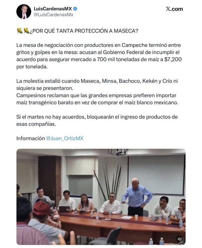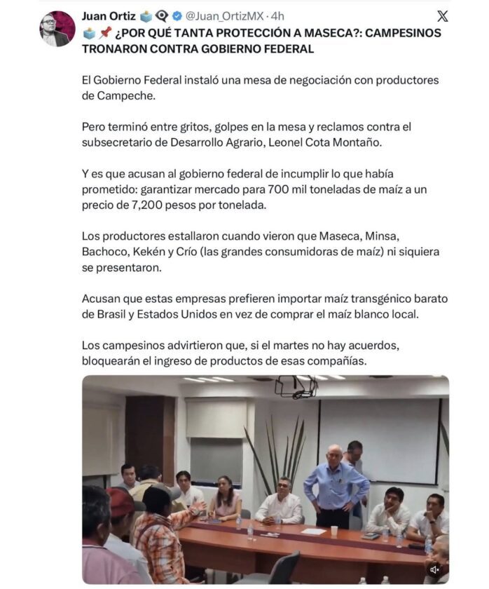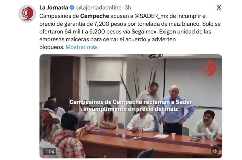 MEDIOS NACIONALES EXHIBEN A GOBIERNO FEDERAL Y ESTATAL POR INCUMPLIR ACUERDOS CON MAICEROS CAMPECHANOS