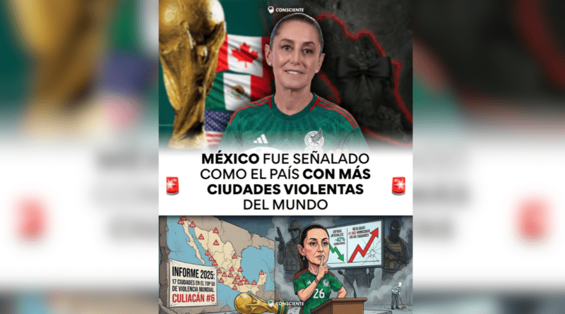 En una publicación realizada en sus redes sociales, el medio de comunicación y noticias Consciente dio a conocer que el Consejo Ciudadano para la Seguridad Pública y la Justicia Penal reveló en su informe anual 2025 que 17 de las 50 ciudades más violentas del planeta son mexicanas, superando por casi el doble a Colombia, que lo “escolta” con 8.