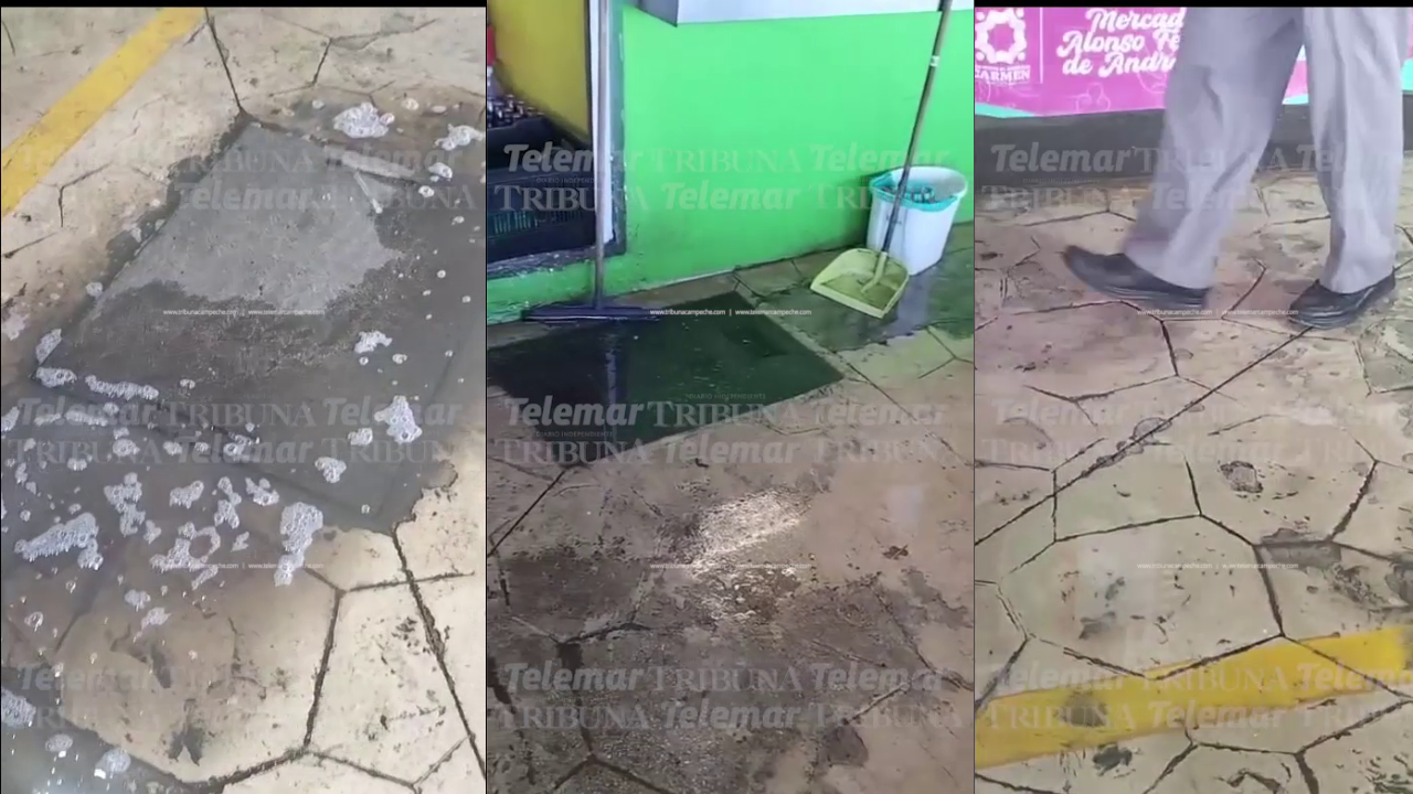 A través de videos mostraron la “invasión” de aguas de olores fétidos, lo que pone en riesgo la salud de locatarios y visitantes, lo cual no es amor por Carmen, sino abandono y negligencia, subrayaron.