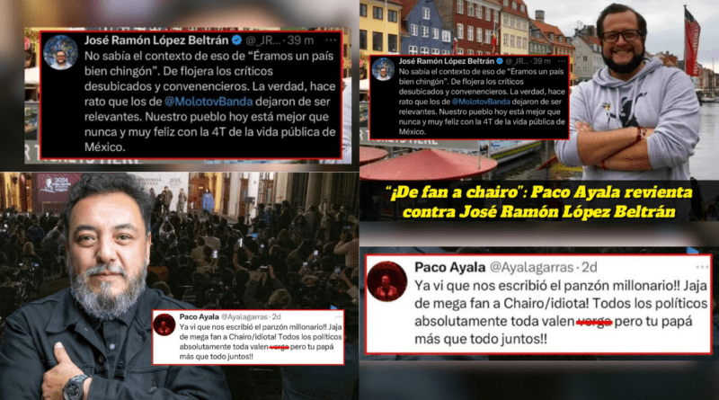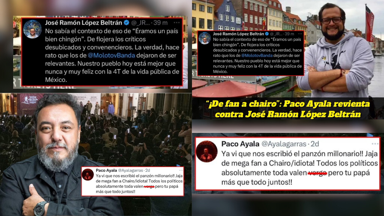 Luego de que durante su concierto por los treinta años de carrera musical el grupo Molotov lanzó críticas contra el Gobierno de la Cuarta Transformación, el hijo del expresidente Andrés Manuel López Obrador, José Ramón López Beltrán, llamó a los músicos “críticos desubicados, convenencieros e irrelevantes”, ante lo cual el bajista Paco Ayala le respondió: “Ya vi que nos escribió el panzón millonario. De mega fan a chairo idiota. Todos los políticos valen, pero tu papá más que todos juntos”.