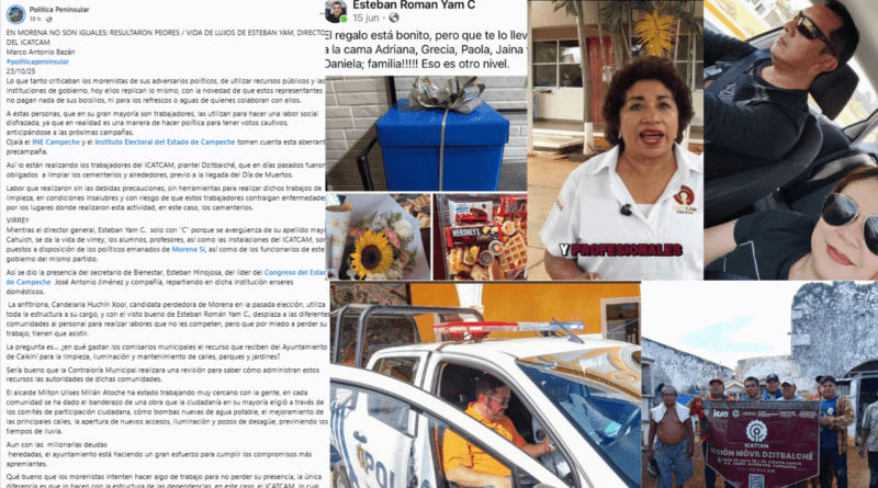 En una publicación en sus redes sociales, el periodista Marco Antonio Bazán denuncia que no Morena no son iguales, sino resultaron peores al incurrir en lo que tanto criticaron al usar recursos públicos e instituciones de Gobierno en labores de precampaña partidista, como ocurre con trabajadores del Instituto de Capacitación para el Trabajo del Estado de Campeche (Icatcam), cuyo director, Esteban Yam Cahuich, se da la vida de virrey.