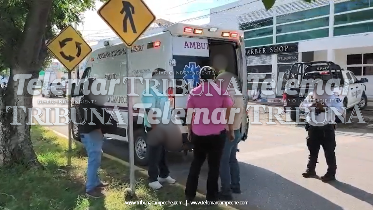 Sobre la avenida José López Portillo, cerca de la Fiscalía General del Estado de Campeche (FGECAM), paramédicos del Servicio de Atención Médica de Urgencias (SAMU) le brindaron hoy lunes los primeros auxilios a tres personas, una de las cuales es empleada de la dependencia y fue hospitalizada tras ser atropellada por una moto adaptada cuyo conductor no respetó su alto y junto con su pasajera sólo sufrieron golpes leves.