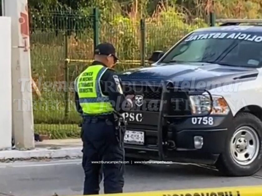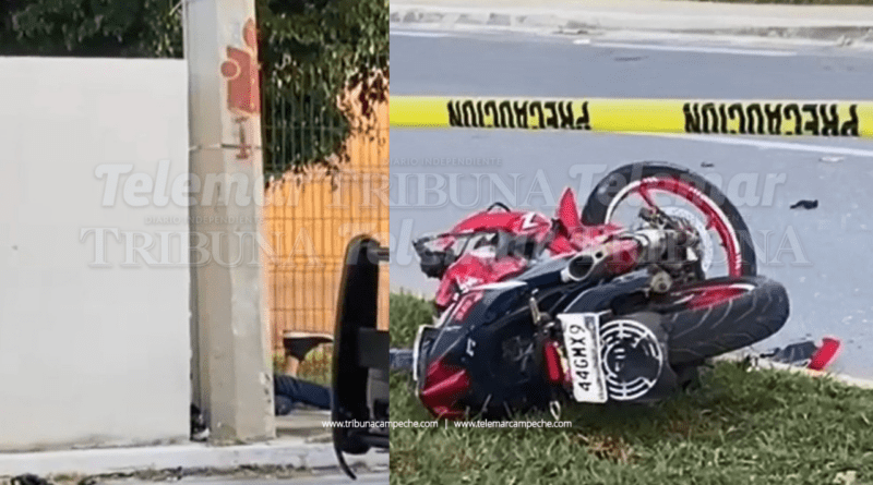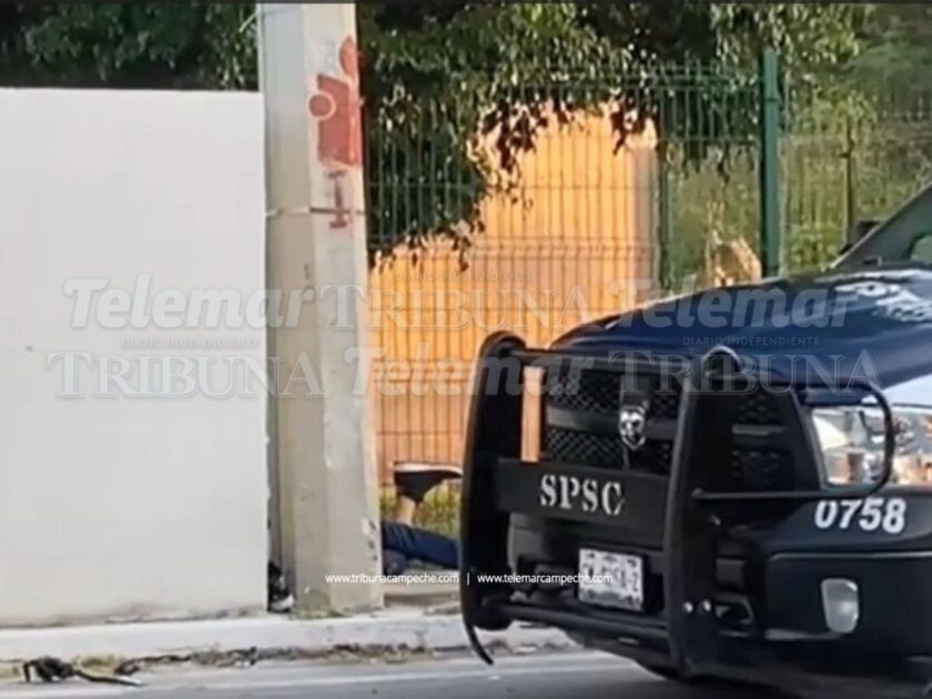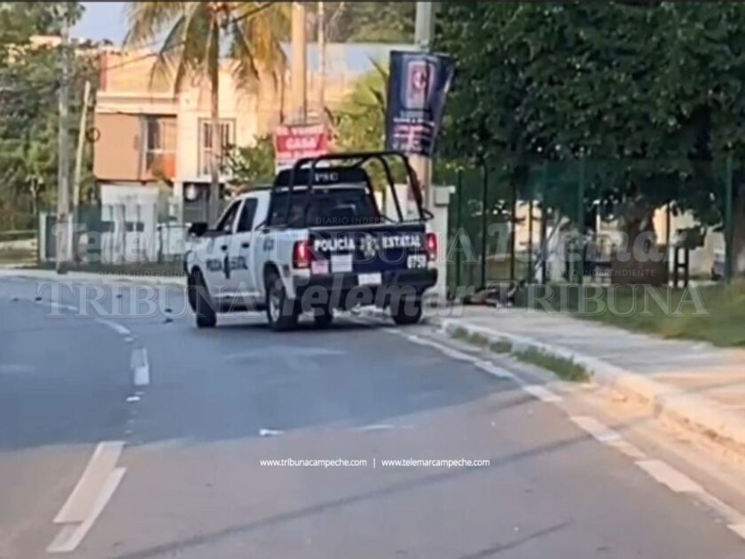 La motocicleta ZR-200 color rojo y con placas del Estado de Campeche, terminó destrozada sobre el camellón y a unos 20 metros de donde quedó el cuerpo del militar.