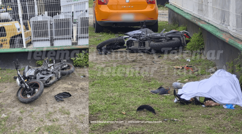 Ciudad del Carmen.- Sobre la avenida Cuatro Carriles, a la altura del Rastro Municipal, un motociclista perdió la vida al impactarse contra una base de concreto y salir proyectado hacia la barda perimetral de una empresa dedicada a la renta de plantas industriales.