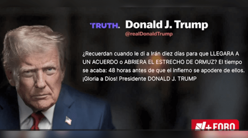 MUNDO: EN 48 HORAS SE DESATARÁ EL “INFIERNO” SOBRE IRÁN SI NO HAY ACUERDO: TRUMP
