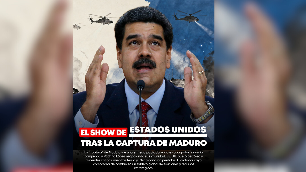 A través de sus redes sociales, el creador digital autodenominado Corto Político expuso que Nicolás Maduro no fue capturado, sino vendido por sus acreedores globales, lo que fue ocultado con el teatro del “búnker de acero” y los ∆t∆ques aéreos coreografiados a depósitos vacíos. “No fue una victoria militar estadounidense, sino la l¡quidac¡ón judicial de una empresa fallida llamada Venezuela… no fue una incursión de comandos, sino la llegada de cobradores a embargara el último activo rentable de la corporación: el dictador.
