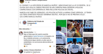 Como se recordará, la destitución de Saradán Solís fue la primera exigencia de los agentes inconformes, sin embargo, Marcela Muñoz se negó y acrecentó la molestia al grado de que luego exigieron su renuncia, lo que apoyaron miles de campechanos con tres marchas en el malecón.
