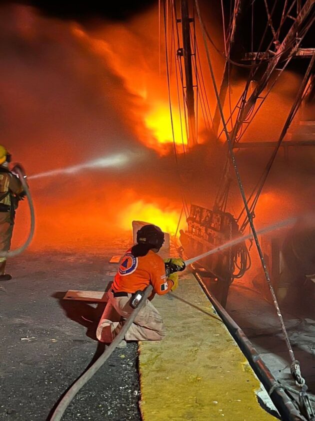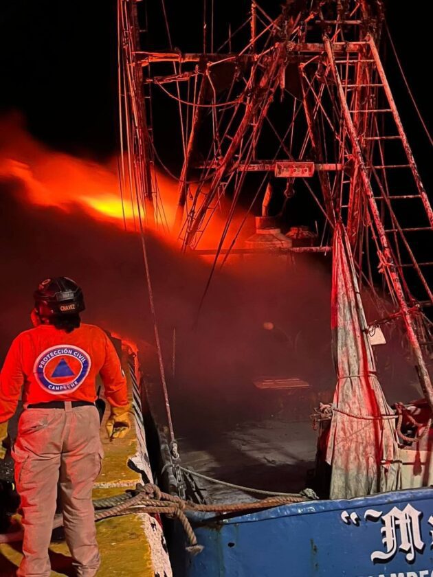 En el operativo participaron elementos de la Dirección de Proximidad y Protección Civil de Campeche, así como del Cuerpo de Bomberos de la Secretaría de Protección Civil (Seproci), quienes trabajaron para evitar que las llamas alcanzaran otras embarcaciones cercanas.