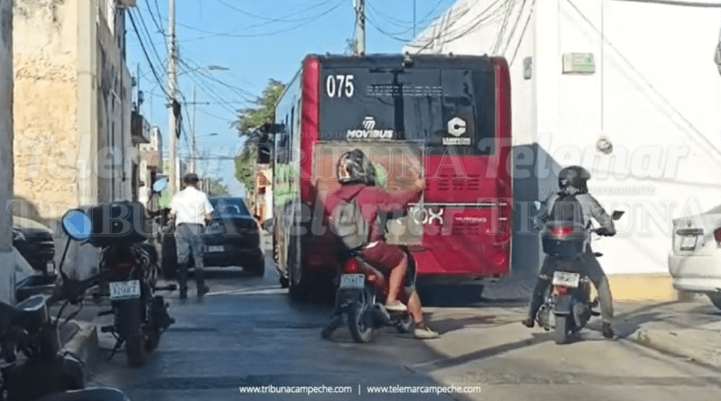 De nueva cuenta un carro estacionado “paralizó” la circulación de camiones del Ko’ox, en esta ocasión fue entre las calles 14 y Ponciano, donde se generó congestión vehicular y quedaron “atoradas” dos unidades del transporte público.