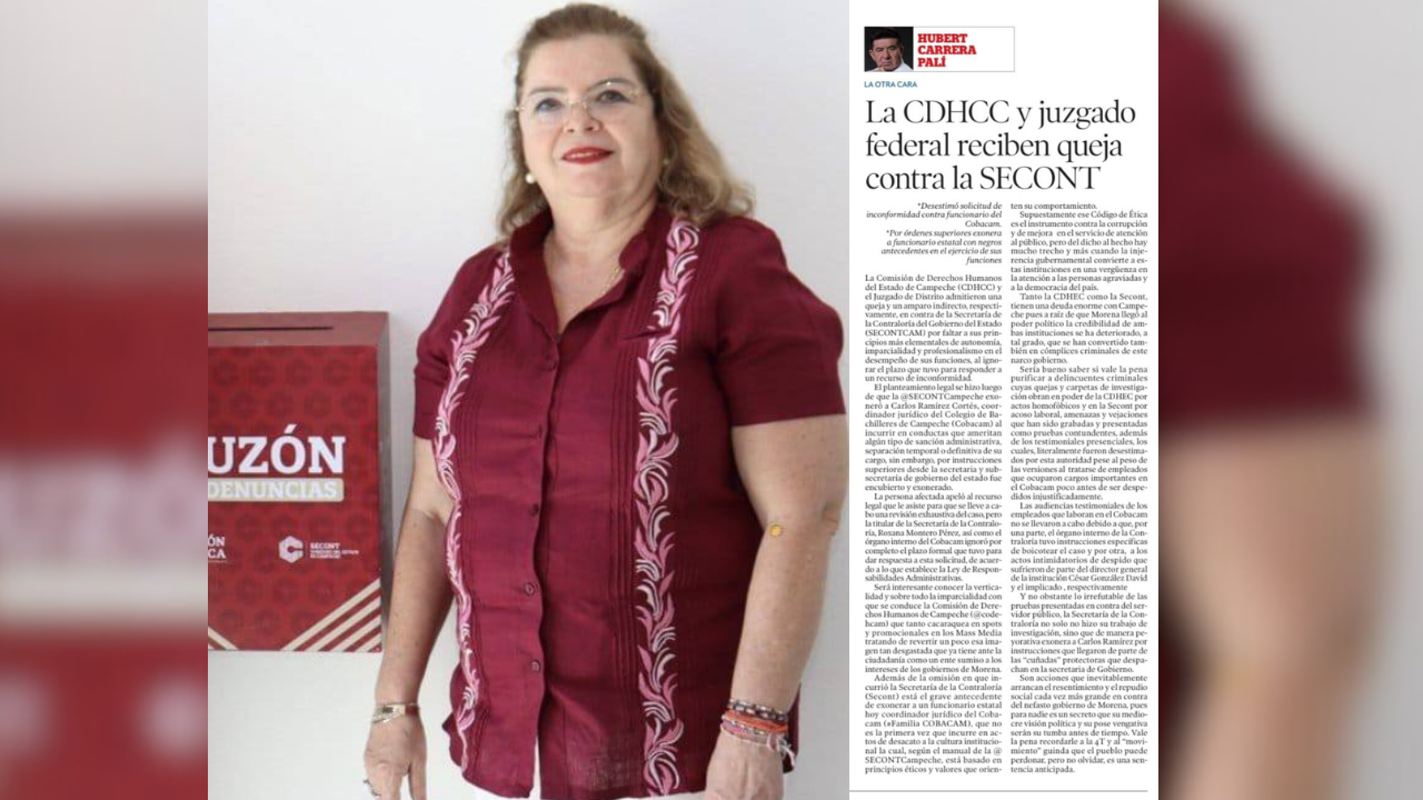Tanto la CDHEC como la Secont, tienen una deuda enorme con Campeche pues a raíz de que Morena llegó al poder político la credibilidad de ambas instituciones se ha deteriorado, a tal grado, que se han convertido también en cómplices criminales de este narco gobierno.