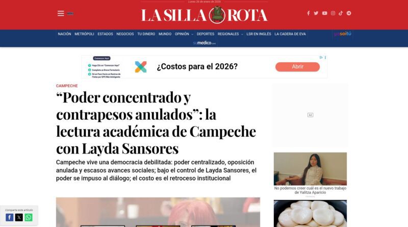OPINIÓN: “PODER CONCENTRADO Y CONTRAPESOS ANULADOS”: LA LECTURA ACADÉMICA DE CAMPECHE CON LAYDA SANSORES | Por: Gabriela Aragón Amézquita | LA SILLA ROTA