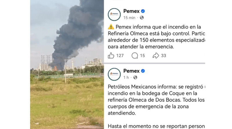 La tarde de este jueves 9 de abril se registró un incendio al interior de la Refinería Olmeca, en Dos Bocas, lo que generó movilización de cuerpos de emergencia.