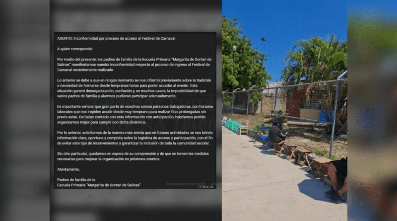San Francisco de Campeche.- Padres de familia de la Escuela Primaria “Margarita de Gortari de Salinas” manifestaron su inconformidad por irregularidades durante el acceso al recién realizado Festival de Carnaval, pues denunciaron falta de información y logística deficiente.