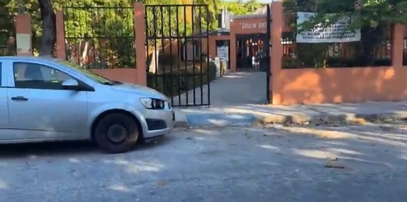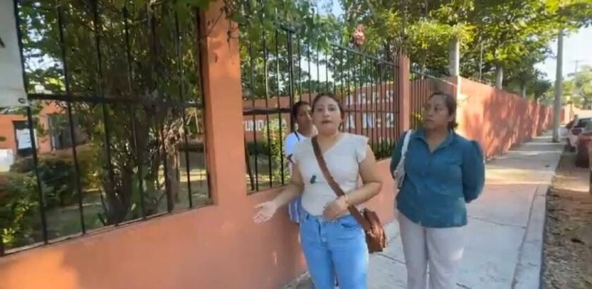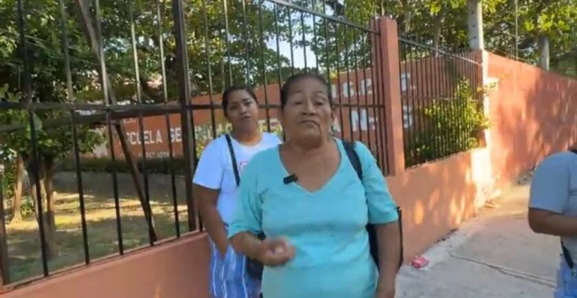 Padres de familia se manifestaron afuera de la Secundaria Técnica 26 en Ciudad del Carmen para exigir el reembolso del dinero que entregaron para comprar tambores, boinas y golpes para el desfile del 20 de noviembre, insumos que nunca fueron entregados.