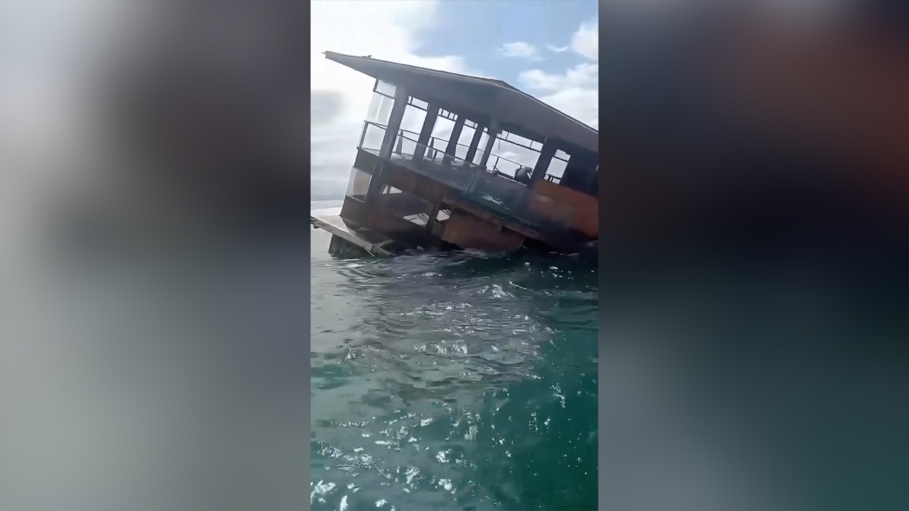 El restaurante flotante “El Atracadero”, arrastrado días atrás por la creciente del río Tuxpan, fue hallado a la deriva en aguas del Golfo de México por pescadores de Sontecomapan, Veracruz. El hallazgo fue grabado por Felipe Oliveros, quien registró en video la estructura parcialmente dañada mientras flotaba mar adentro.