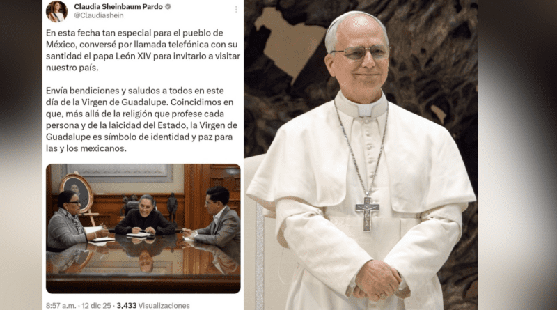 Por medio de sus redes sociales, y en medio de las festividades en honor a la Virgen Morena, la presidenta Claudia Sheinbaum Pardo reveló que conversó telefónicamente con el Papa León XIV para invitarlo a visitar México.