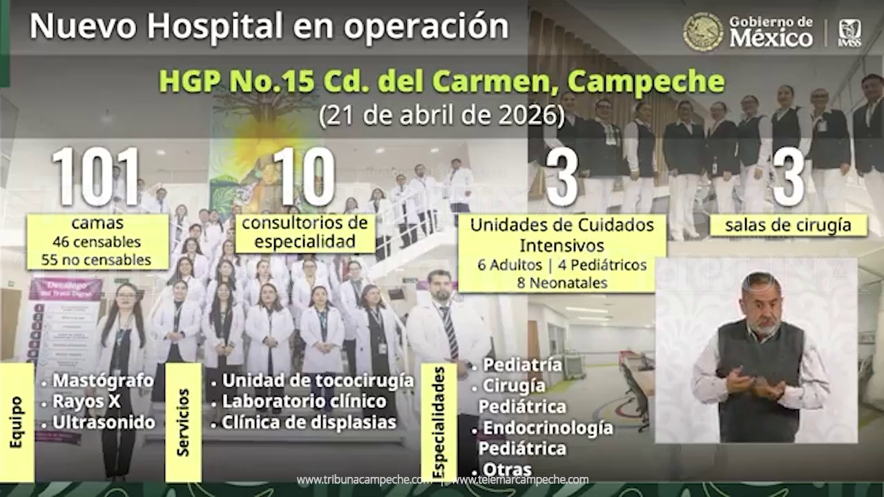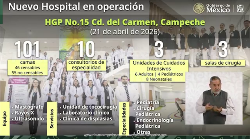 Durante la conferencia mañanera de este martes, el director del IMSS, Zoé Robledo, presentó el Hospital de Gineco-Pediatría No. 15 en Ciudad del Carmen, una obra iniciada en 2012 que ahora fue retomada para su rehabilitación y puesta en operación.