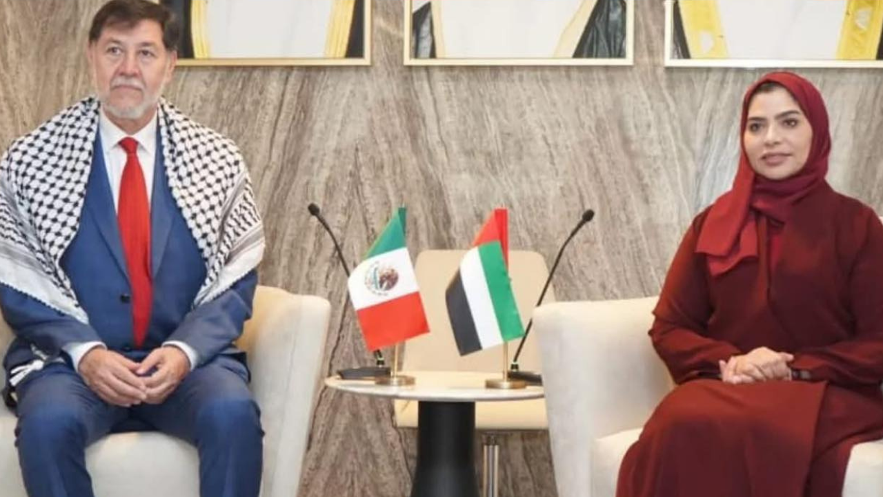 El legislador escribió: “Rumbo a mi primera reunión de la gira en Emiratos Árabes”. Acompañan a la publicación dos fotos, en una Noroña aparece con lentes oscuros dentro de un vehículo y en la otra en la reunión, junto a una mujer con vestimenta árabe.