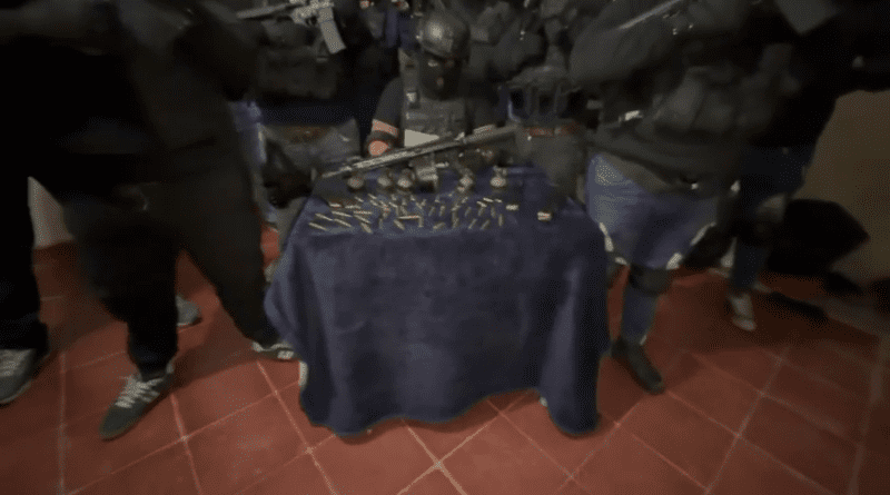 En las imágenes se observa a más de una docena de hombres con vestimenta táctica, encapuchados y fuertemente armados, quienes portan armas largas automáticas y semiautomáticas, así como granadas de fragmentación, equipo considerado de uso exclusivo del Ejército Mexicano.