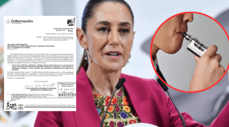 Luego de que la tarde de ayer jueves 25 de septiembre la presidenta Claudia Sheinbaum Pardo entregó a la Cámara de Diputados la iniciativa en que se establece sanción de hasta 8 años de prisión por la adquisición, almacenamiento y venta de cigarrillos electrónicos y vapeadores, que será turnada a la Comisión de Salud para su análisis, el coordinador de los diputados de Morena y presidente de la Junta de Coordinación Política, Ricardo Monreal, publicó la iniciativa.