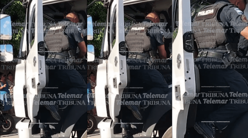 Champotón.- Durante la revisión a la cabina de un tráiler, uno de los 2 elementos de la Policía Municipal de Champotón fue captado metiendo a sus bolsillos “algo” que encontró en un bolso al parecer de mujer, que derivó en el hallazgo de alcohol y droga, sin que hasta el momento haya sido precisada la cantidad y de qué tipo, y la detención de 2 personas, debido a que la unidad pesada había atropellado a una persona.