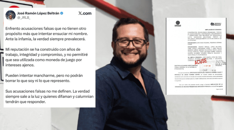 Tras darse a conocer que el diputado federal del PAN, Federico Döring Casar, amplió su denuncia ante la Fiscalía General de la República (FGR) por delitos de conspiración, d3lincu3nc¡a organizada, tráfico de hidrocarburos, contrabando, entre otros, en su contra, José Ramón López Beltrán, hijo mayor de AMLO, respondió que enfrenta acusaciones falsas, y advirtió: “Quienes difaman y calumnian tendrán que responder”.