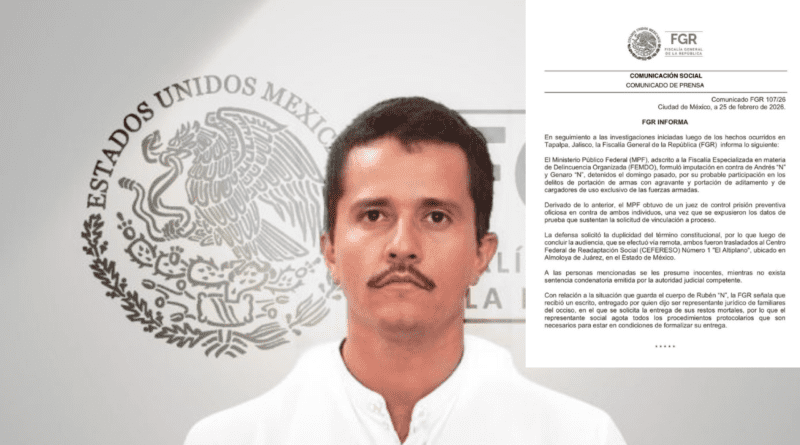 La Fiscalía General de la República FGR informó que recibió un escrito de quien dijo ser representante jurídico de familiares de Rubén Nemesio Oseguera Cervantes, alias “El Mencho”, en el que se solicita la entrega de sus restos.