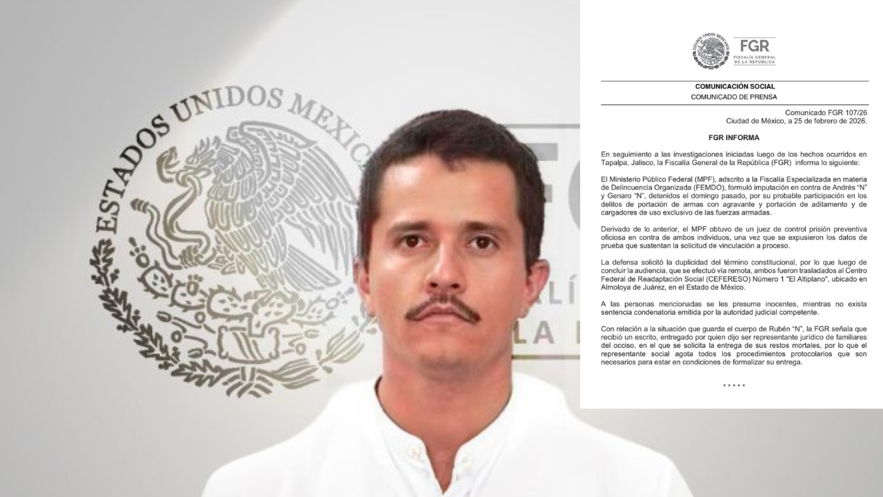 La Fiscalía General de la República FGR informó que recibió un escrito de quien dijo ser representante jurídico de familiares de Rubén Nemesio Oseguera Cervantes, alias “El Mencho”, en el que se solicita la entrega de sus restos.