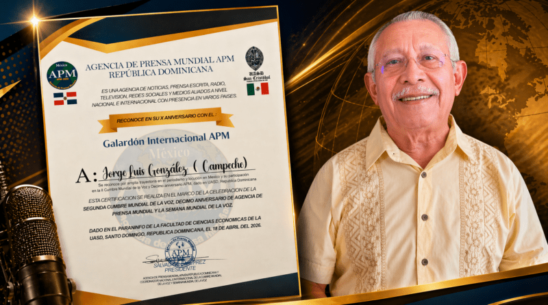 La Agencia de Prensa Mundial APM de la República Dominicana otorgó el Galardón Internacional APM México a Jorge Luis González Valdez, exdirector del periódico Tribuna, como reconocimiento a su trayectoria en el ámbito del periodismo y la locución en el país.