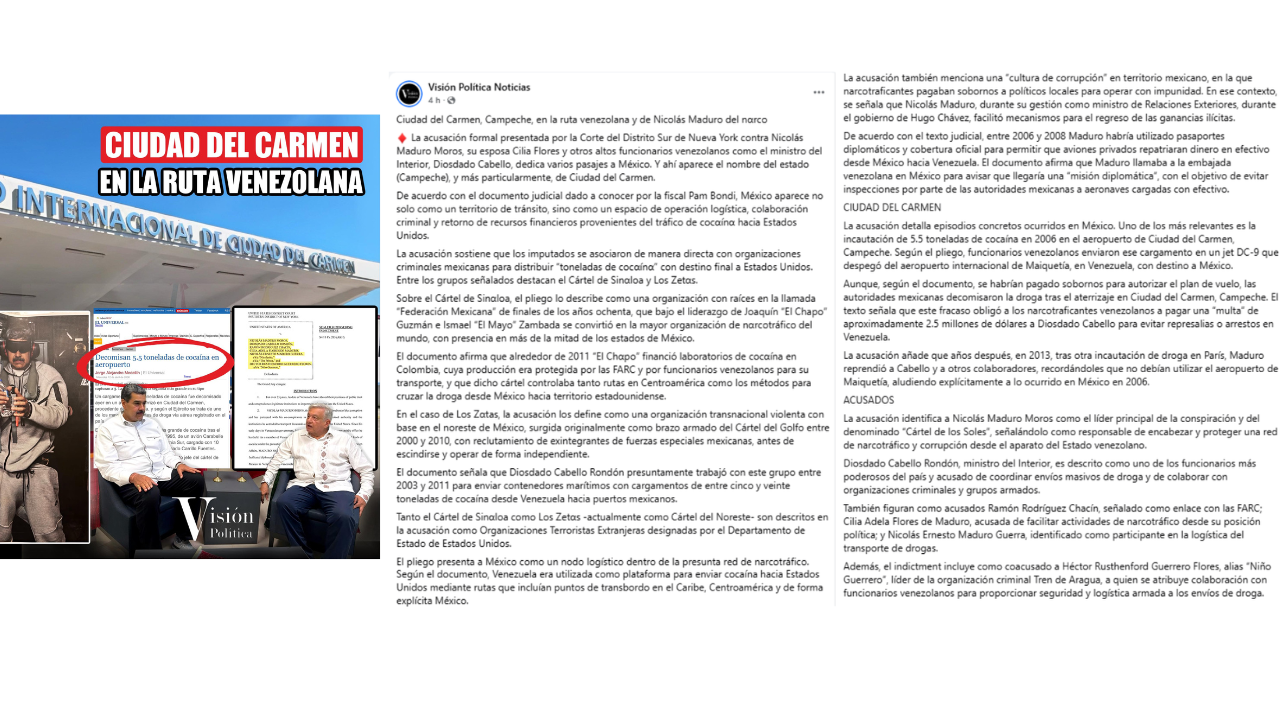 RESALTA CIUDAD DEL CARMEN COMO PARTE DE LA RUTA DE MADURO CON EL NARCO: VISIÓN POLÍTICA