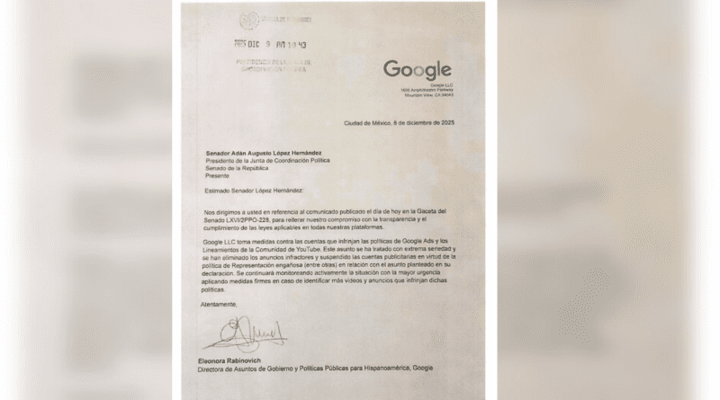 Tras el extrañamiento del presidente de la Junta de Coordinación Política (Jucopo), Adán Augusto, por la circulación de campañas que suplantaban a Claudia Sheinbaum, Google confirmó que retiró la publicidad involucrada y suspendió a los responsables por v¡ol@r sus reglas de representación engañosa.