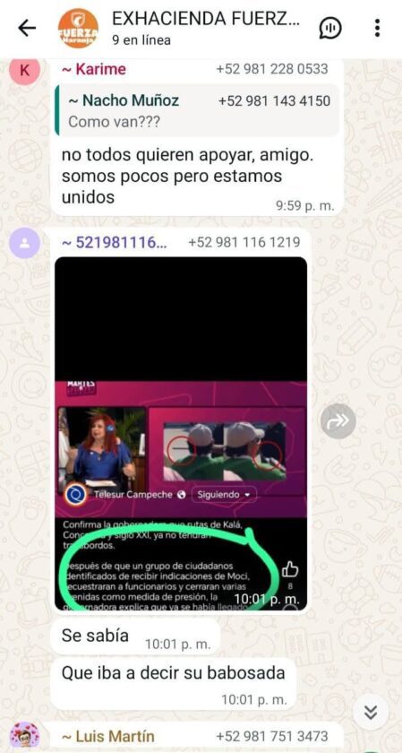 En tanto —prosigue— hoy por la mañana, medios oficialistas publicaron supuestas conversaciones de diputados naranjas “incitando” a vecinos de sus distritos a levantarse contra el Gobierno y el Ko’ox. También ello es falso. En los mensajes difundidos jamás se lee una instrucción, una orden, una propuesta o sugerencia o algún tipo de incitación a la protesta social. Ellos lo saben, pero intentan demostrar lo contrario porque esa es la estrategia para desvirtuar la legitimidad de las inconformidades sociales y los levantamientos espontáneos en las colonias. Es ruin y traicionero, porque eso demuestra que Gobierno no tiene intenciones de ver ni oír. Su intención es imponer, le guste a quien le guste y le incomode a quien le incomode, pues tiene que pagar su deuda con el grupo empresarial al que entregó el transporte público de la entidad. Hasta ahí la publicación.