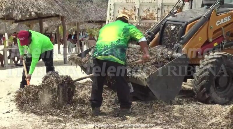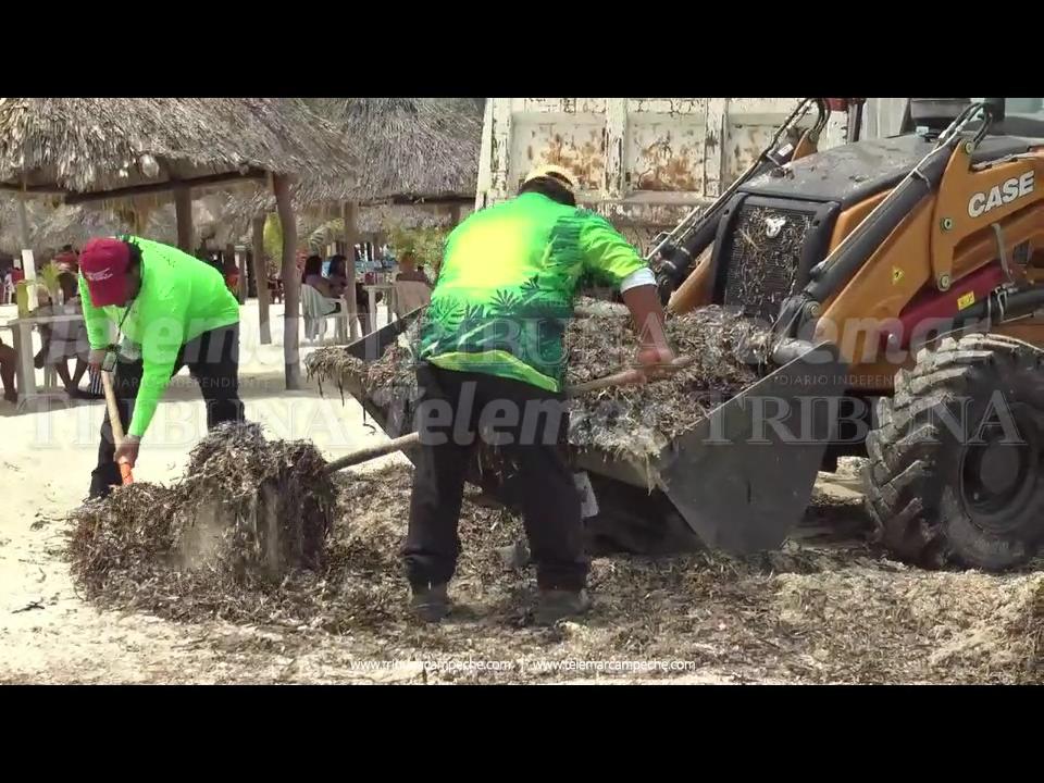 Las playas de Campeche, como es el caso de la inclusiva Playa Bonita, está siendo invadida por sargazo, por lo que para mantenerlas limpias y operativas para recibir a los visitantes, trabajadores de la Administración Portuaria Integral realizan labores de limpieza.