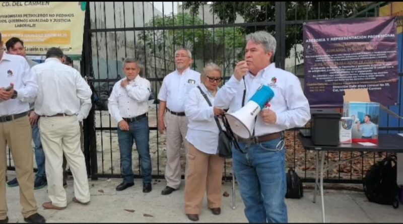 Ciudad del Carmen.- Luego de la convocatoria en redes sociales, integrantes del Comité Ejecutivo Seccional 7 de la Unión Nacional de Técnicos y Profesionistas Petroleros (UNTyPP) se plantaron hoy desde temprana hora frente al edificio de Petróleos Mexicanos (Pemex), ubicado en la calle 33, para exigir alto a la discriminación sindical y aumento salarial, y resumieron: “No pedimos privilegios, queremos igualdad y justicia laboral”.