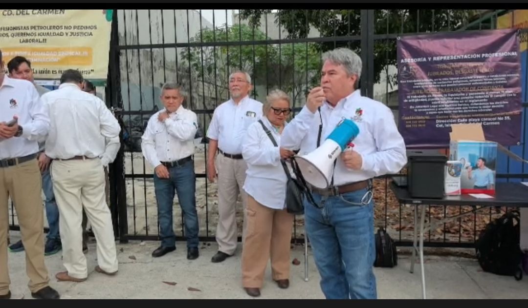Ciudad del Carmen.- Luego de la convocatoria en redes sociales, integrantes del Comité Ejecutivo Seccional 7 de la Unión Nacional de Técnicos y Profesionistas Petroleros (UNTyPP) se plantaron hoy desde temprana hora frente al edificio de Petróleos Mexicanos (Pemex), ubicado en la calle 33, para exigir alto a la discriminación sindical y aumento salarial, y resumieron: “No pedimos privilegios, queremos igualdad y justicia laboral”.