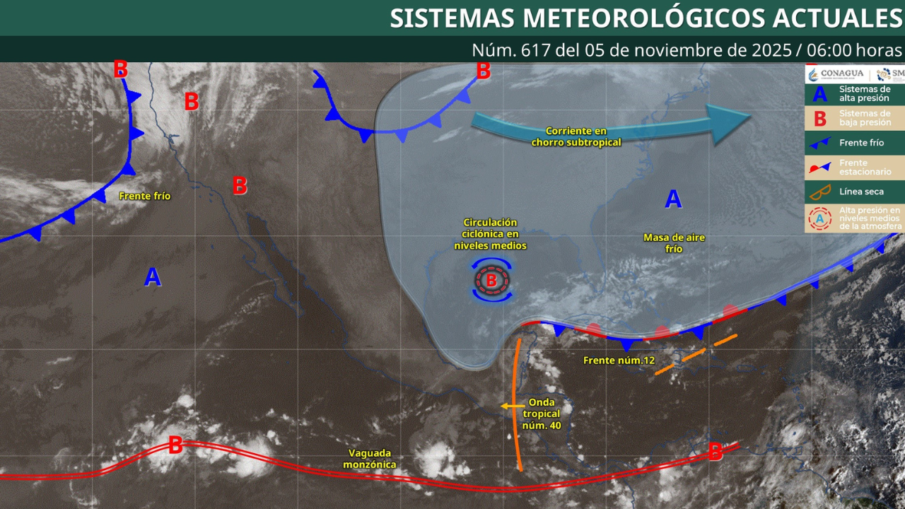 Este miércoles se esperan lluvias fuertes y tormentas eléctricas en varias partes de la península de Yucatán. Esto se debe a la presencia de una onda tropical, una vaguada y los restos del frente frío “Chaká”, lo que ha dejado mucha humedad en la región.
